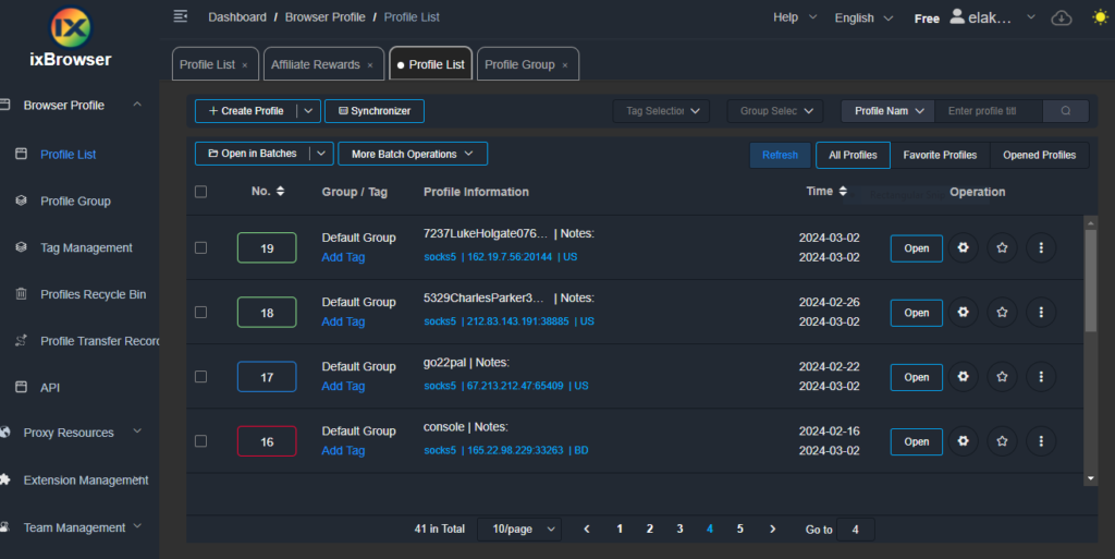 One of the standout features of ixBrowser is the ability to create and manage multiple profiles. You can create unlimited profiles, each with its own settings and fingerprints. This is particularly useful for social media management, e-commerce, and traffic arbitrage.